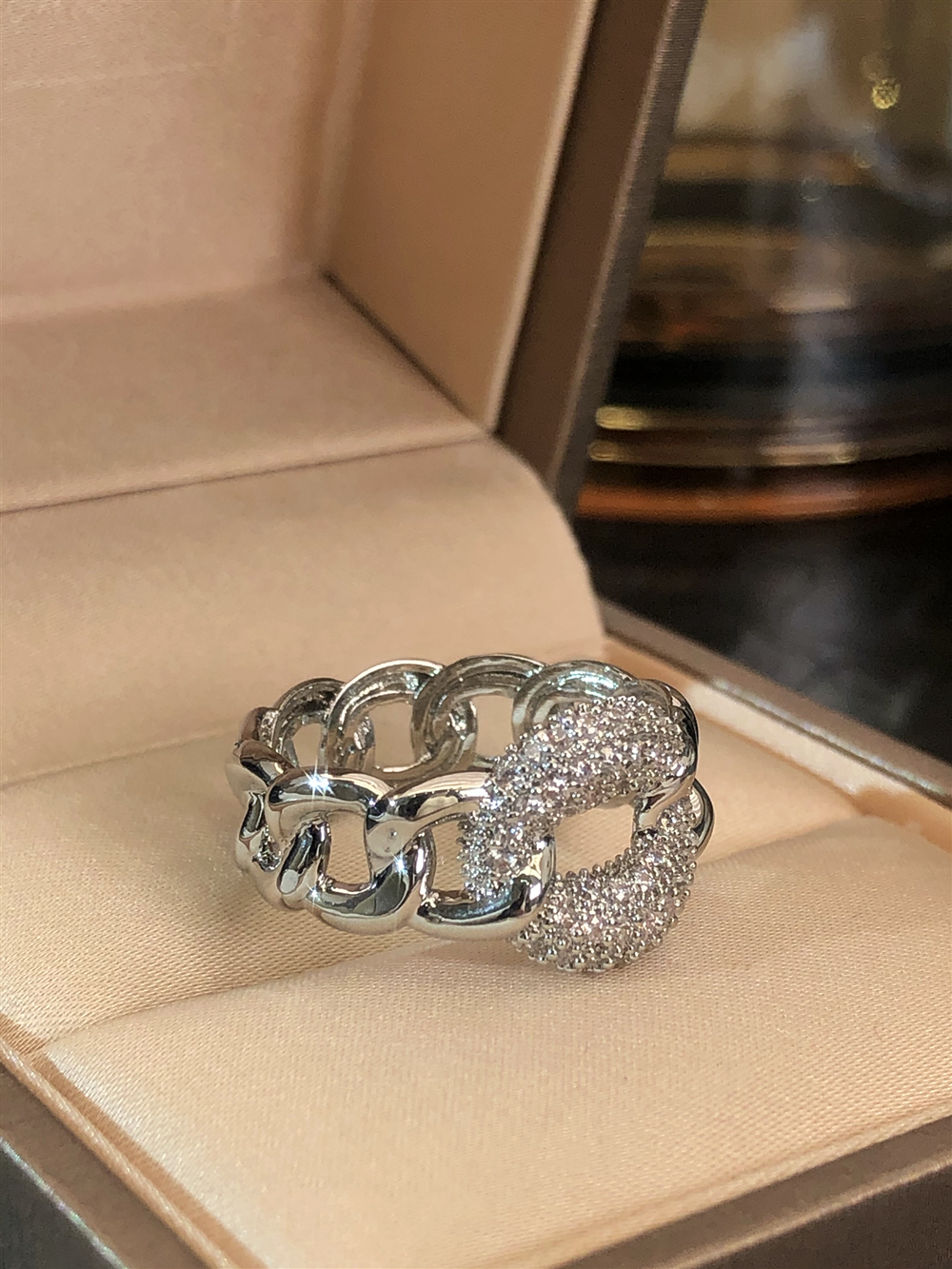 2025年新款链条满钻戒指女ins小众设计感食指戒网红时尚嘻哈指环