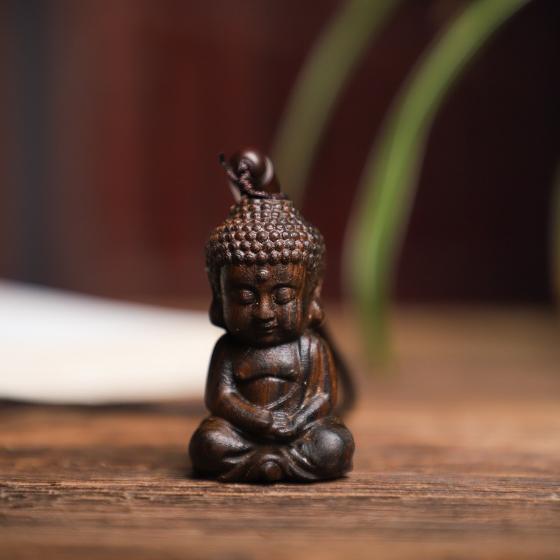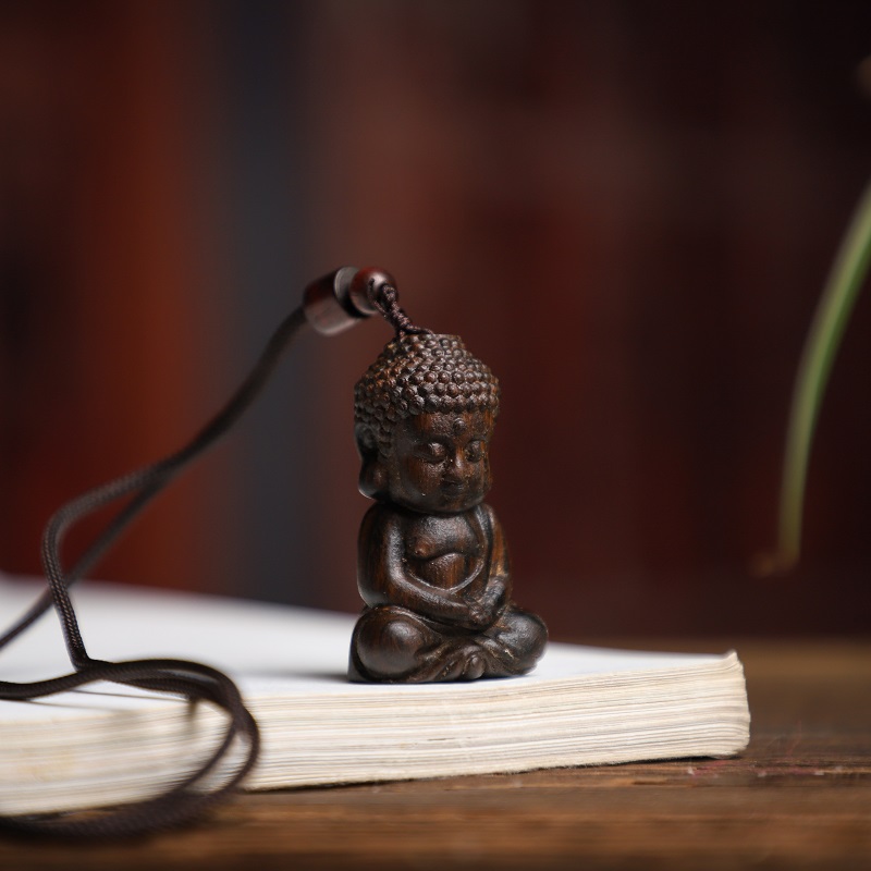 沉香木释迦摩尼佛项链吊坠挂件实木雕刻宝宝佛手把件大日如来佛牌