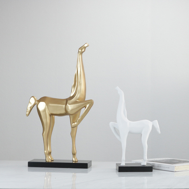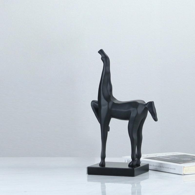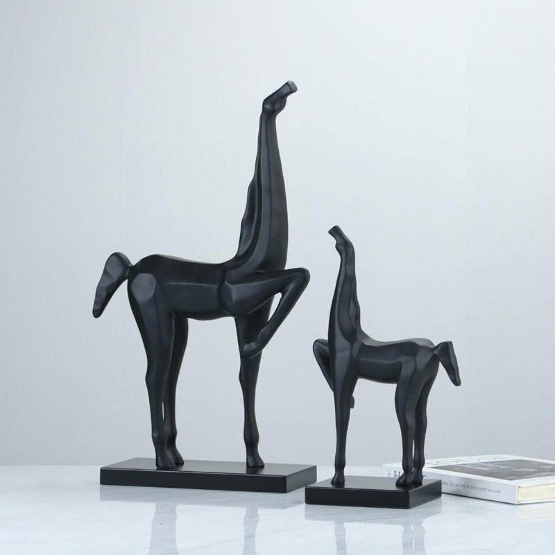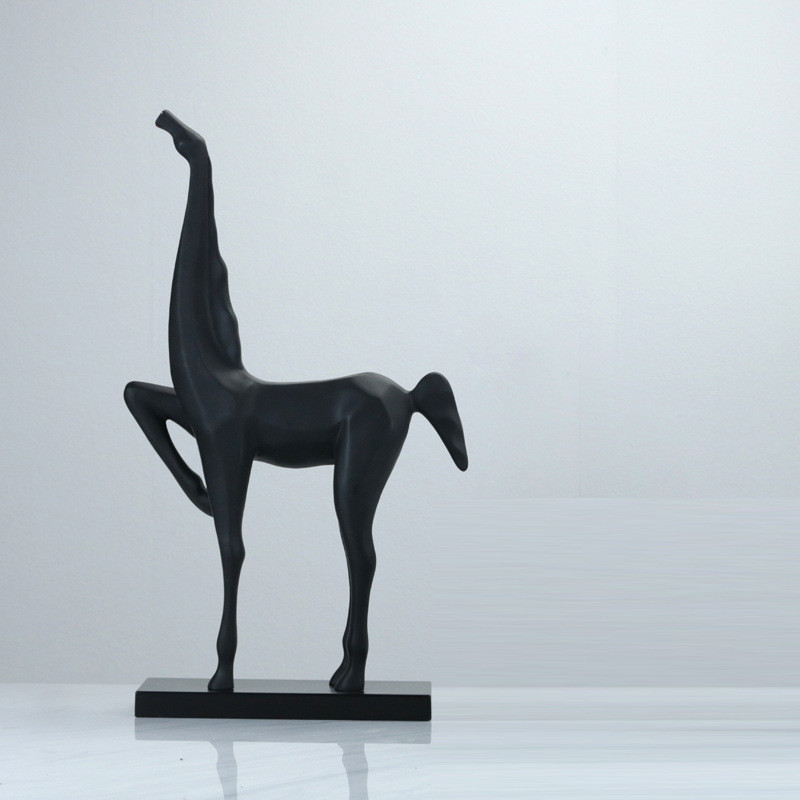现代新中式黑色马雕塑摆件样板房售楼处玄关客厅书房书架软装饰品