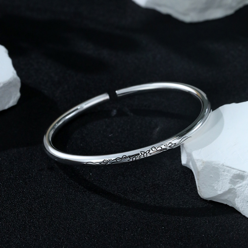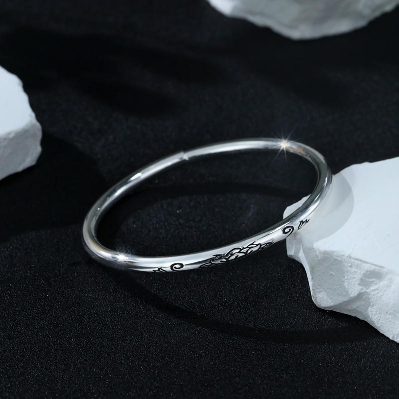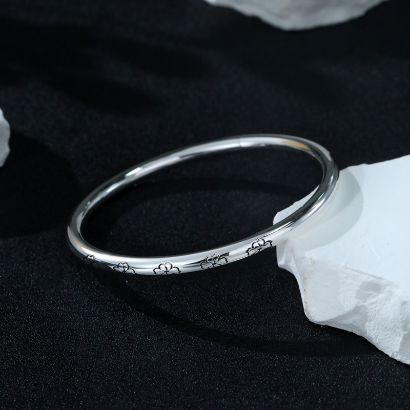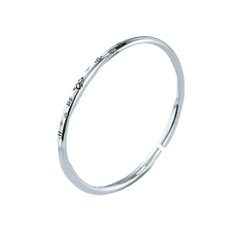 手镯光面滴胶蝴蝶9999镯子小众实心手环情人节礼物银足莲花纯银