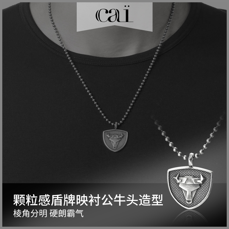 凯翼cai925银生肖复古牛头霸气个性吊坠嘻哈摇滚毛衣搭配男士项链