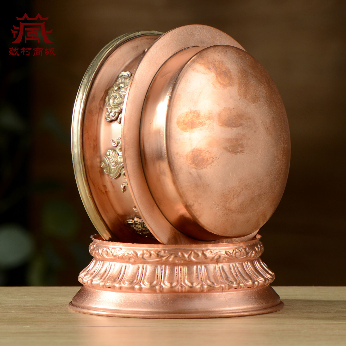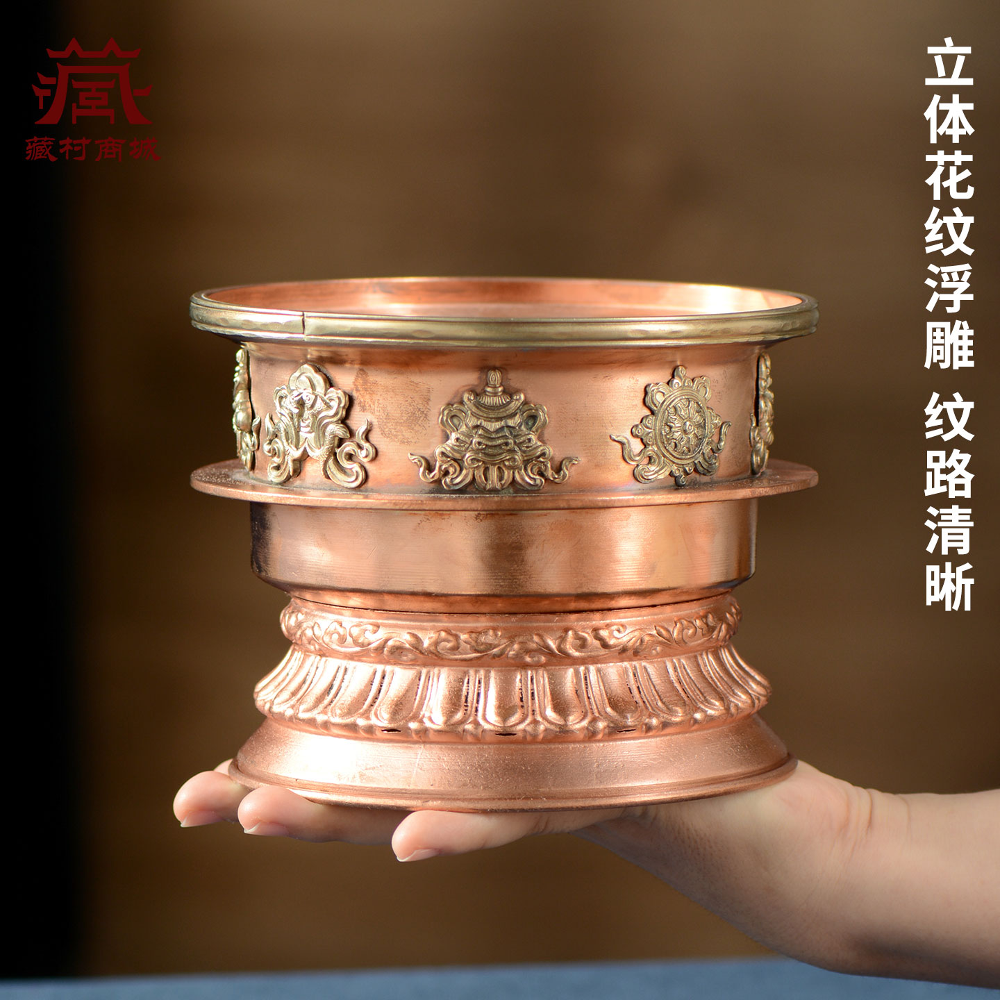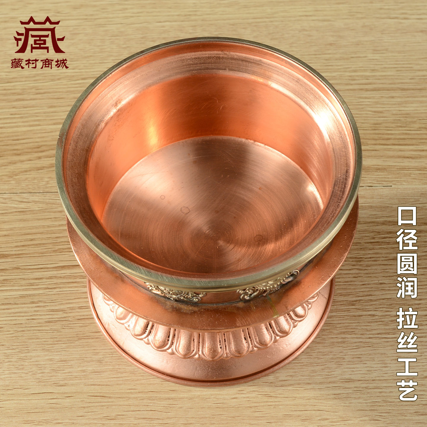藏村铜八宝锅铜碗藏式奶锅八吉祥雕花供果盘贡品盘桌面摆件