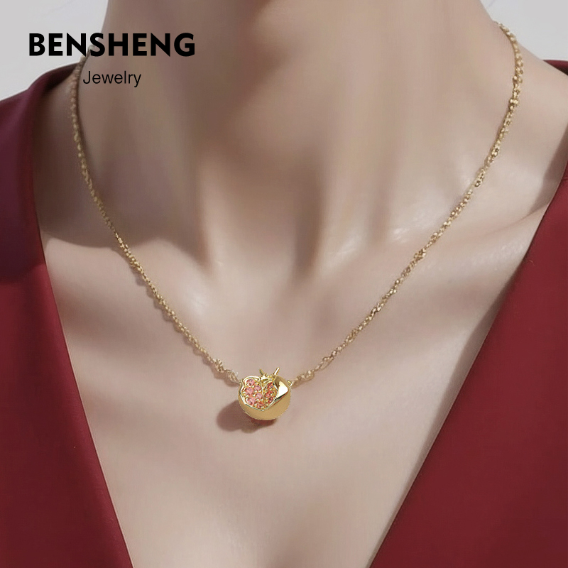 BENSHENG石榴项链女锁骨链法式轻奢原创小众设计感中国风送礼物