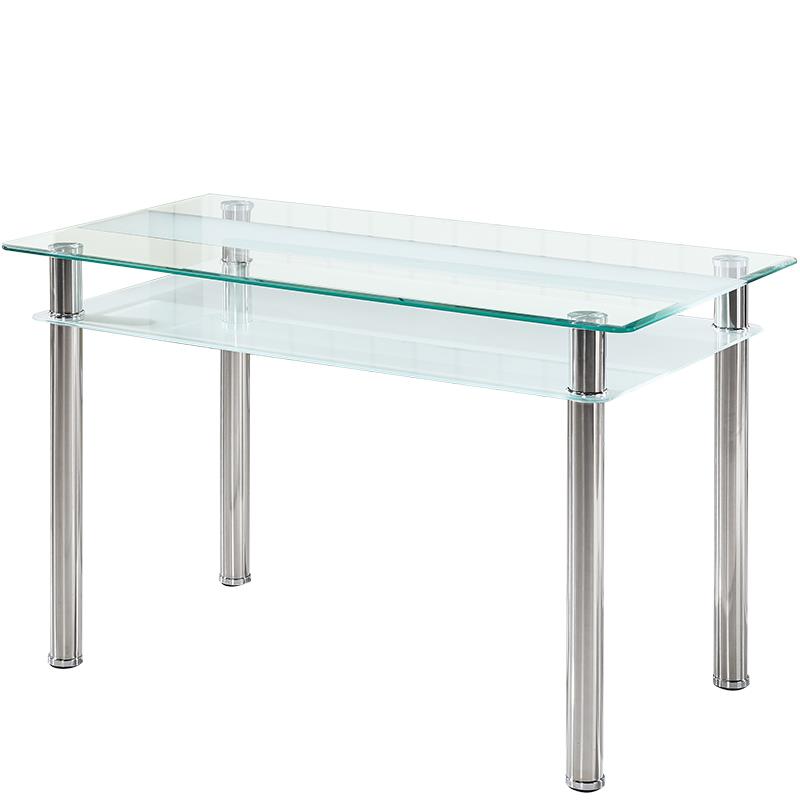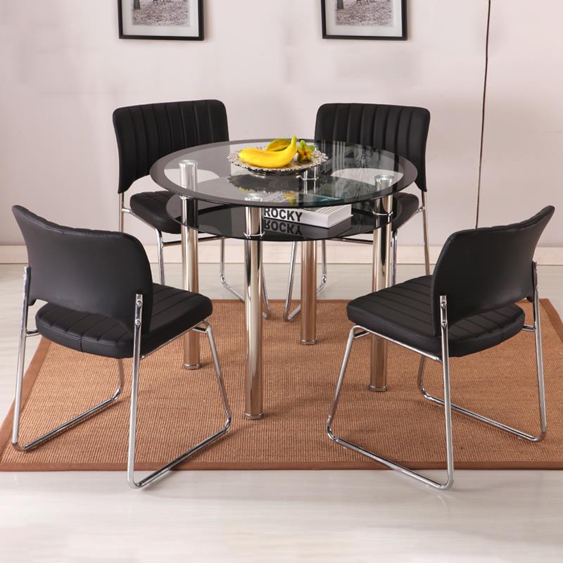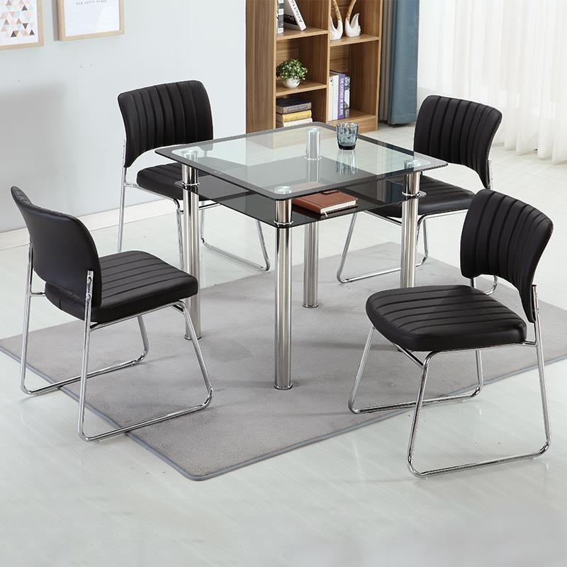 N5小户型家用饭桌双层长方形桌椅组合钢化玻璃台面餐桌简约四方桌