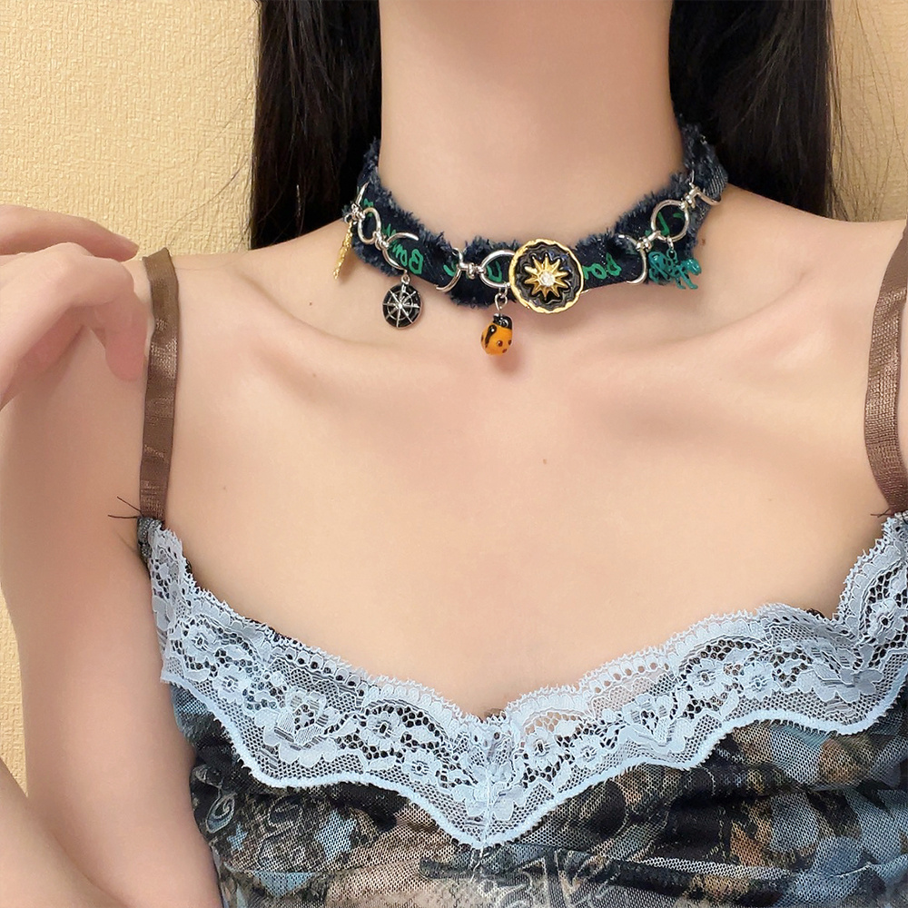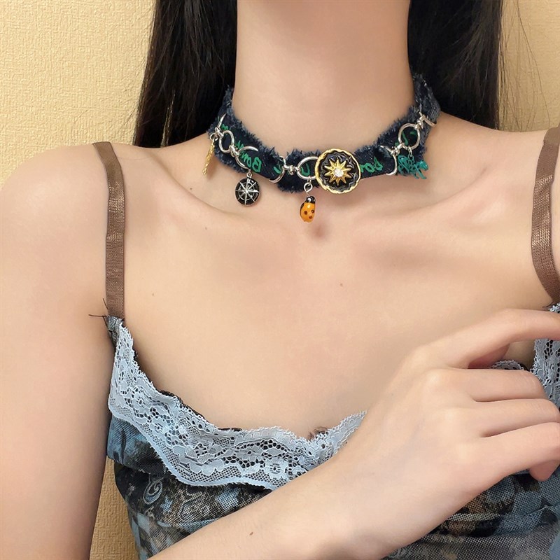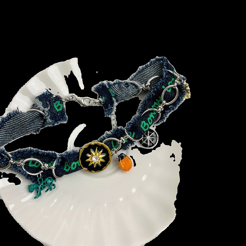 速发太纽扣牛仔布艺牛仔布choker缠绕链条设计辣妹颈链高级感项链