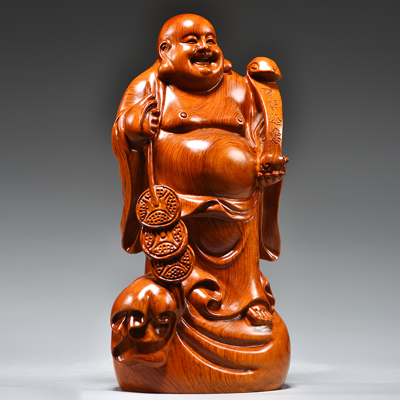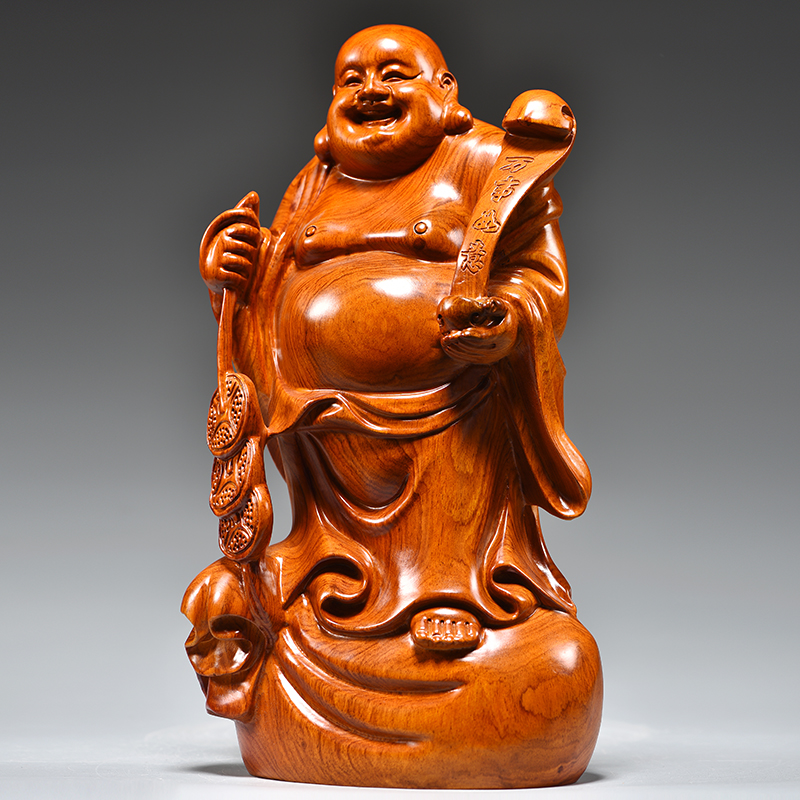 花梨木雕弥勒佛像摆件实木雕刻大肚笑佛红木质大号布袋弥勒工艺品