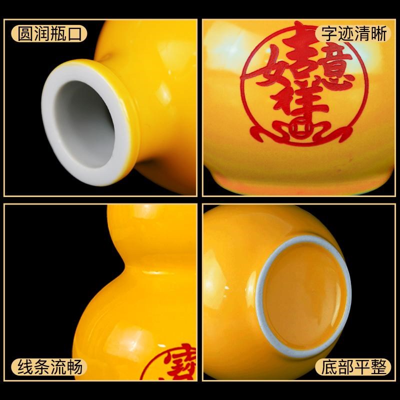 黄色陶瓷葫芦摆件开口空心瓶大小号福字如意家居客厅酒柜装饰品