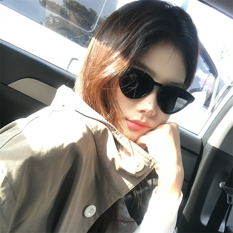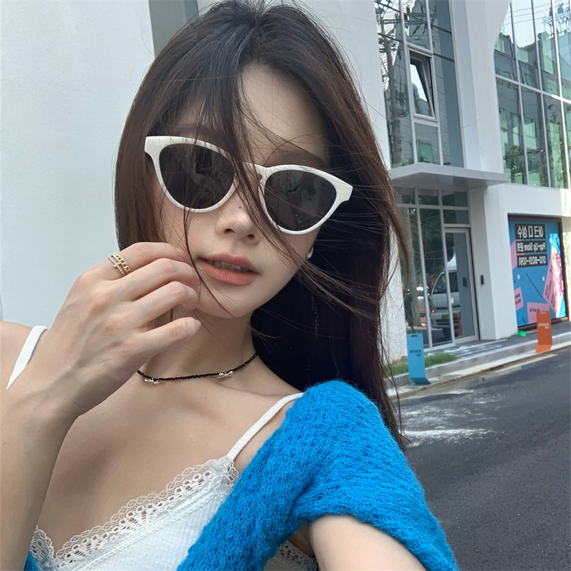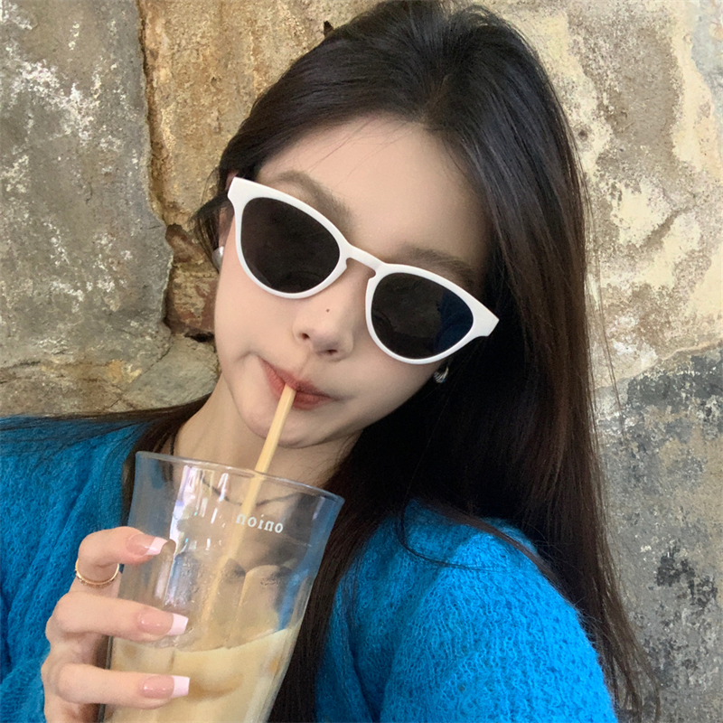 高品质插芯脚复古猫眼小脸偏光白色墨镜高级感防晒太阳眼镜方圆脸