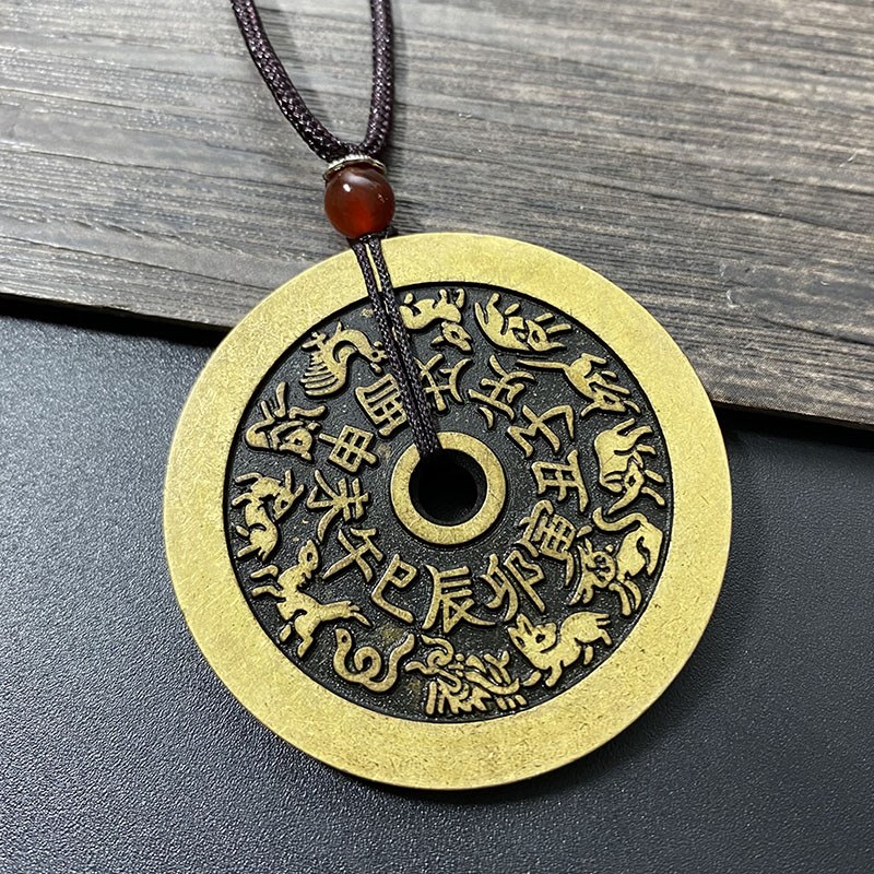 速发纯铜钱花钱吊坠十二生肖八卦挂件山鬼花钱平安扣设计情侣项链