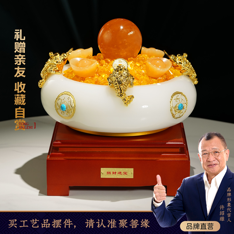 财源滚滚琉璃聚宝盆摆件招财元宝客厅办公室酒柜高档装饰开业礼品