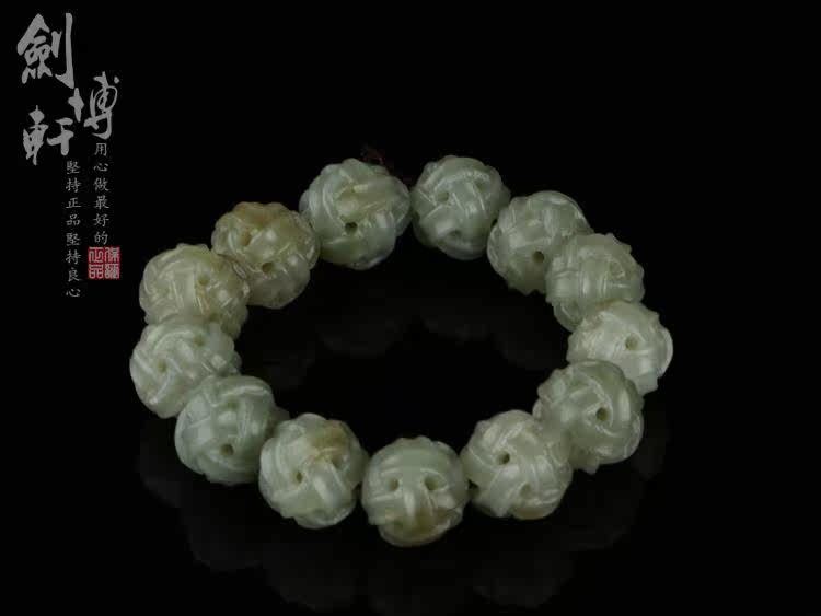 【剑博轩】新疆和田玉 镂空雕 玲珑手串