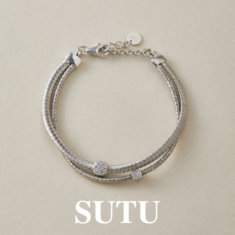 素图手链925银双层方糖意大利手饰进口轻奢小众设计高级感礼物女