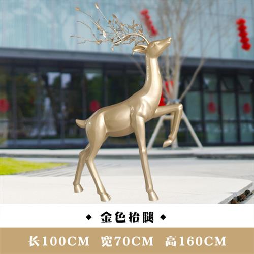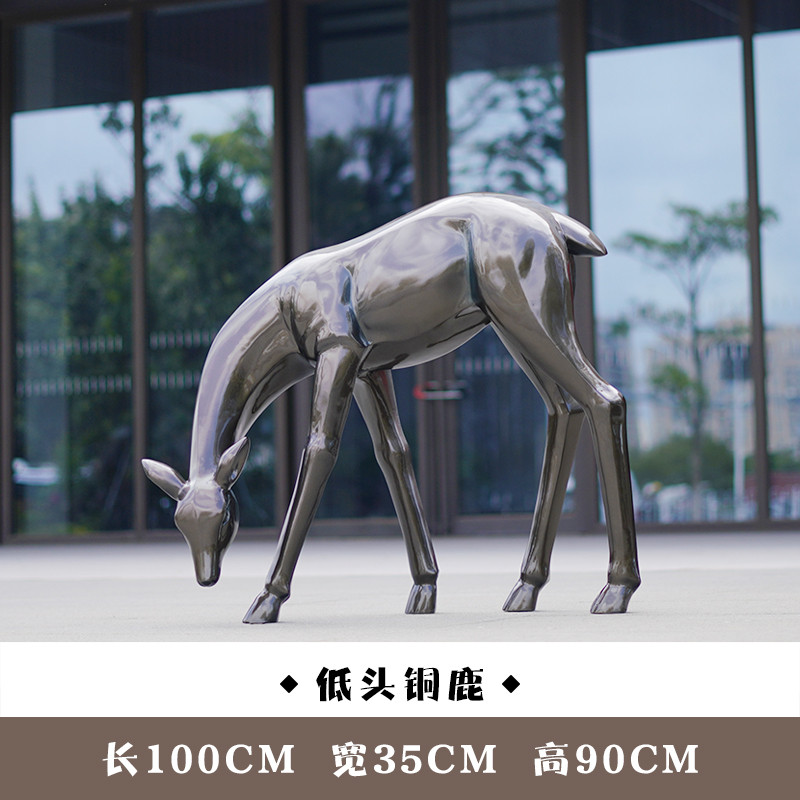 大型抽象仿铜色梅花鹿雕塑摆件会所售楼部玻璃钢室内景观装饰道具