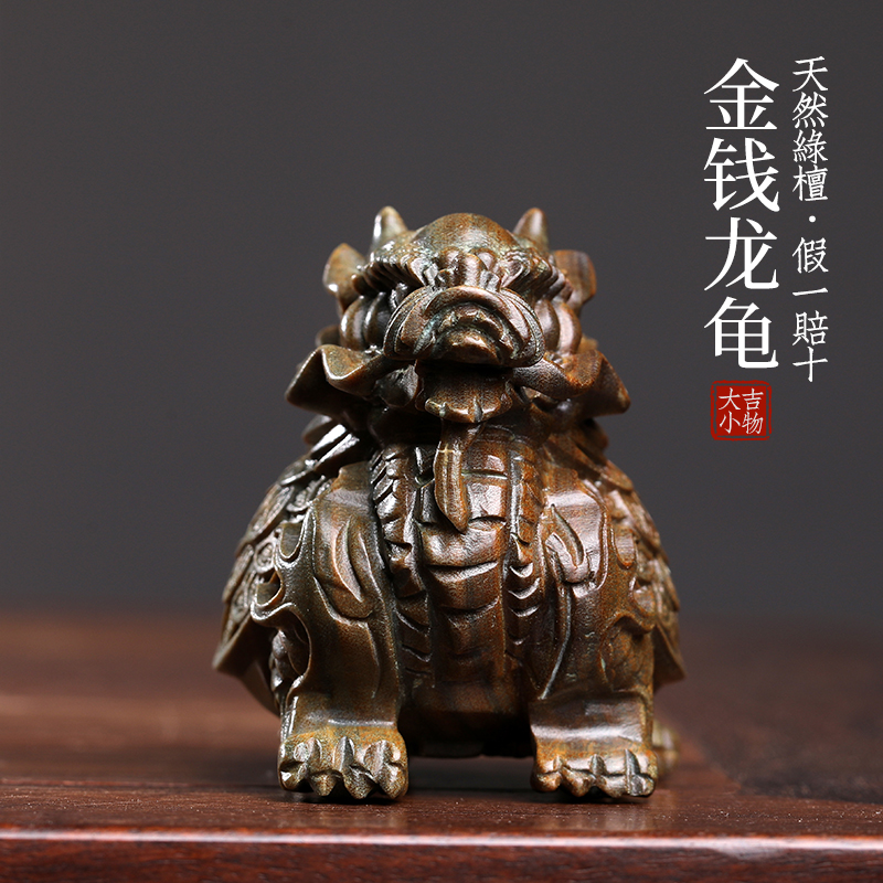 天然绿檀木雕摆件手把件金钱龙龟乌龟文玩檀木雕刻工艺品桌面摆件