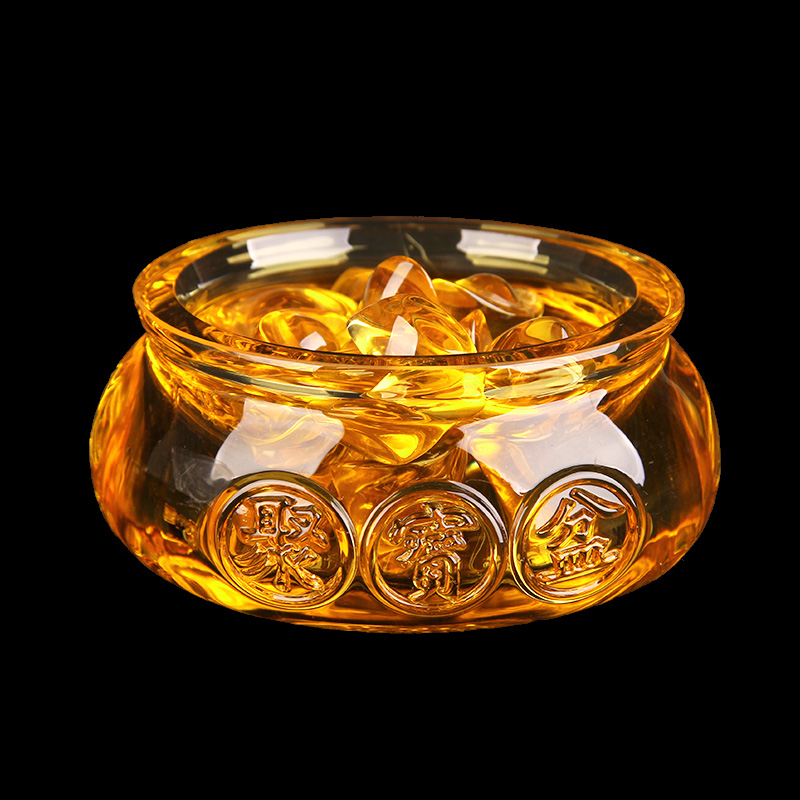 黄色聚宝盆摆件黄水晶琉璃元宝客厅办公室开业礼品家居供奉