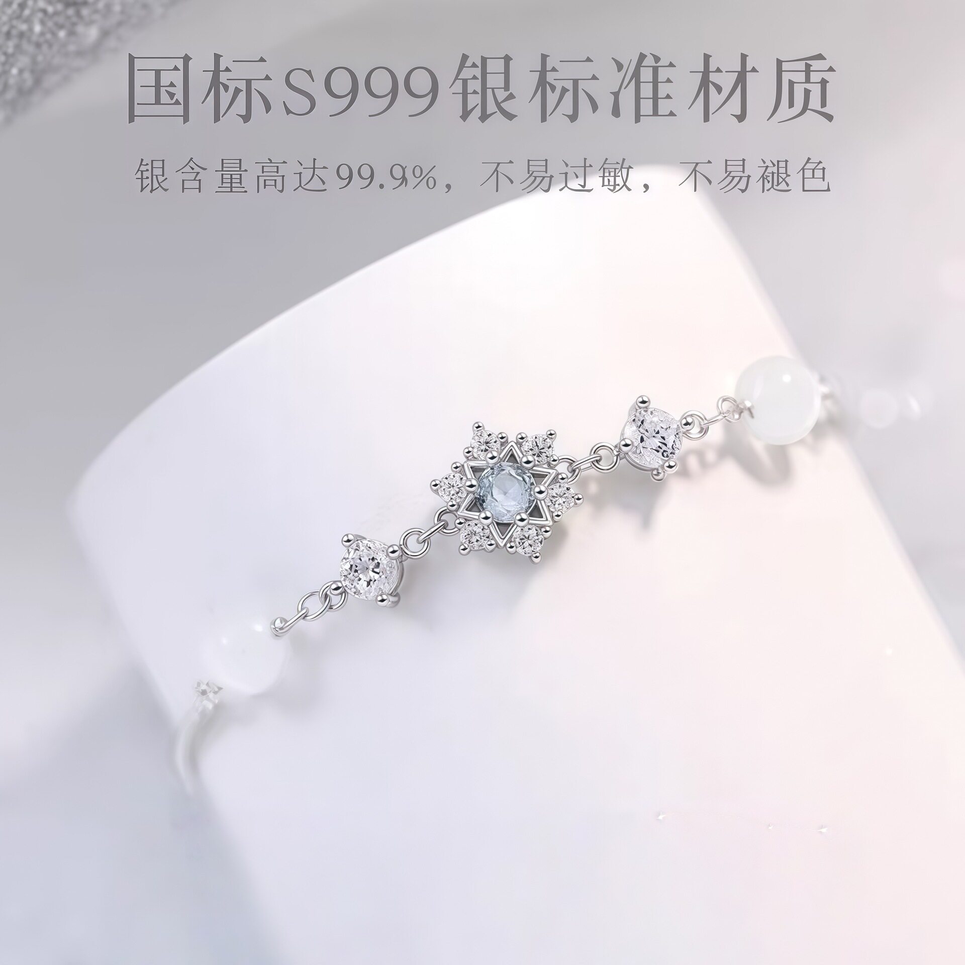 S999足银初雪手链女生轻奢小众雪花设计感精致手饰生日礼物送女友