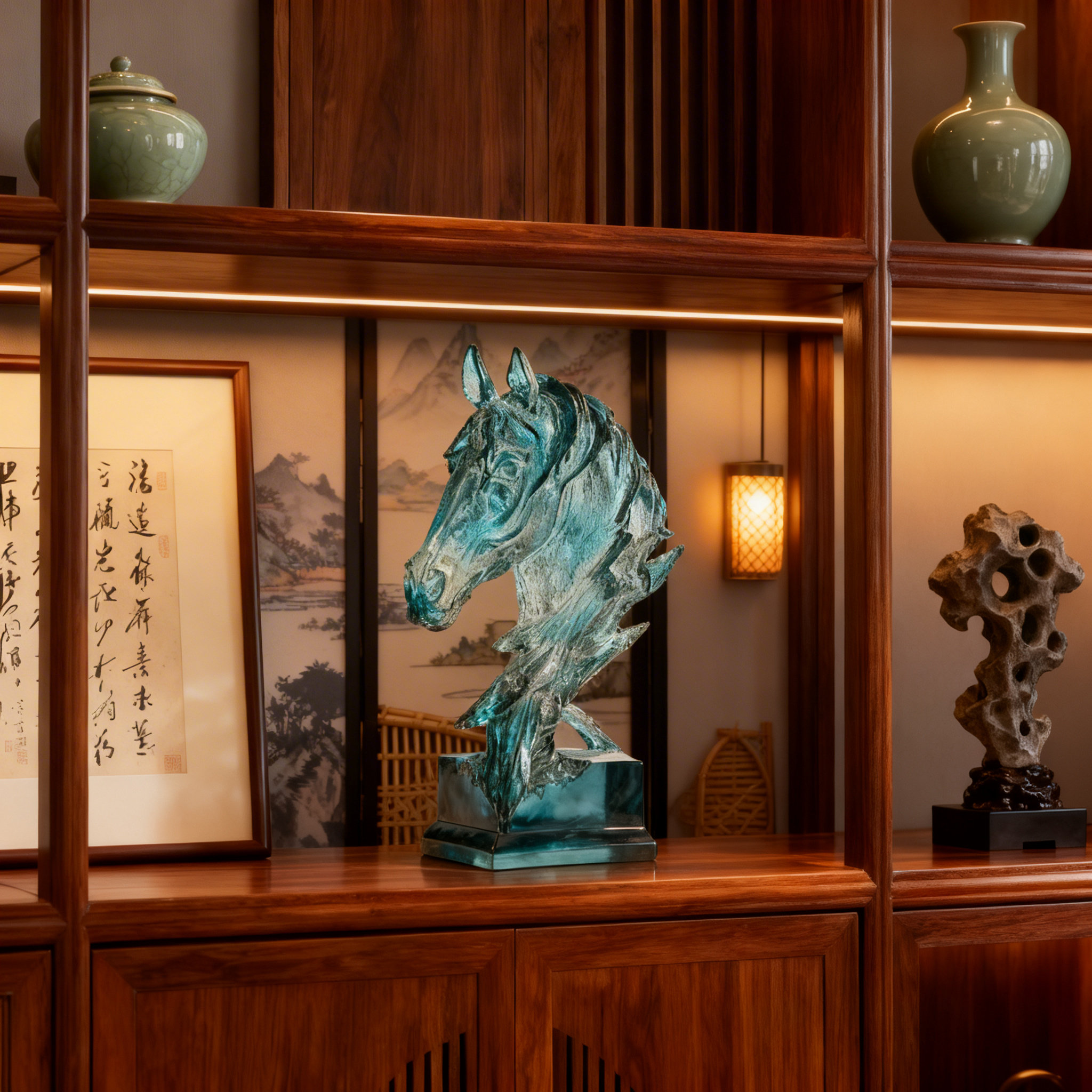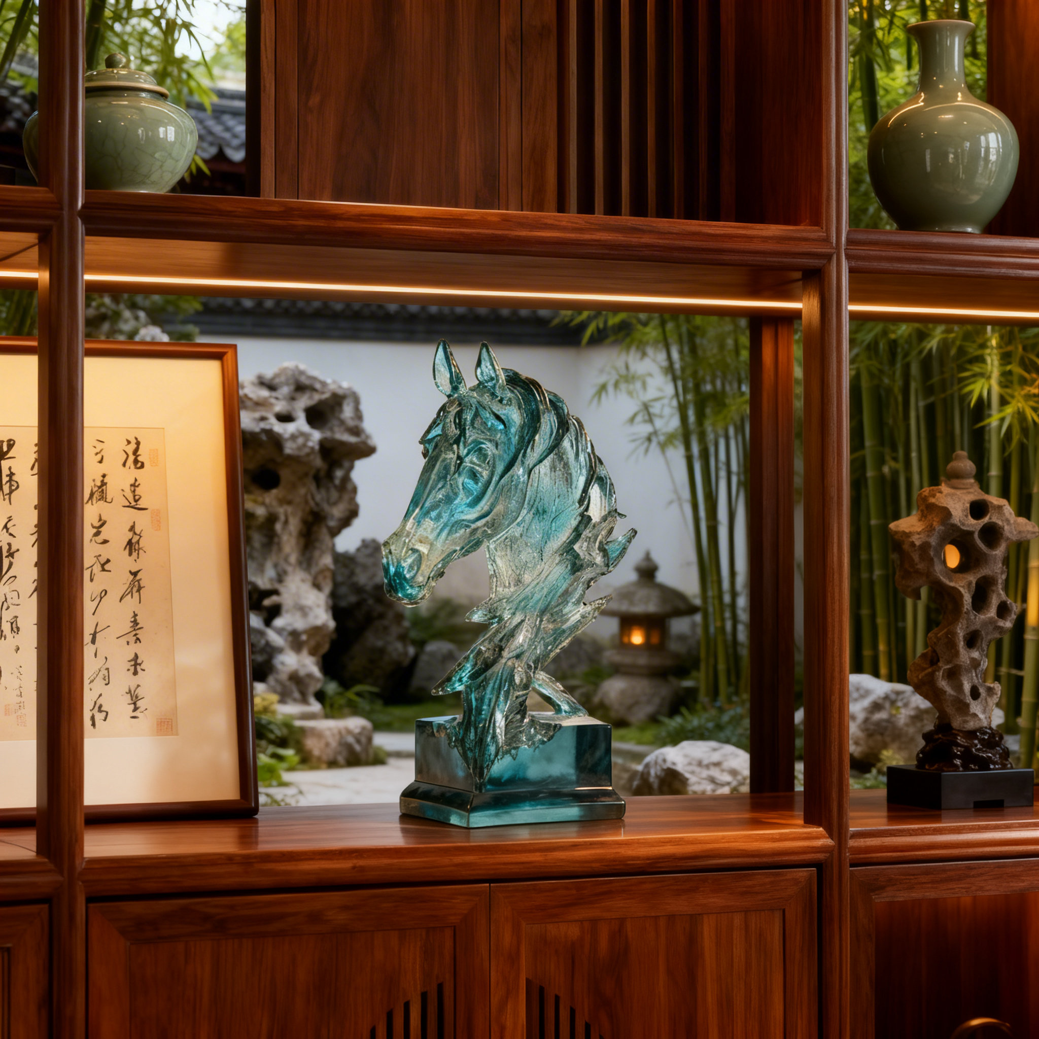 蓝色玻璃马头装饰摆件客厅书房艺术品家居饰品
