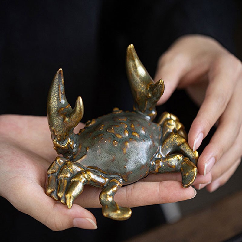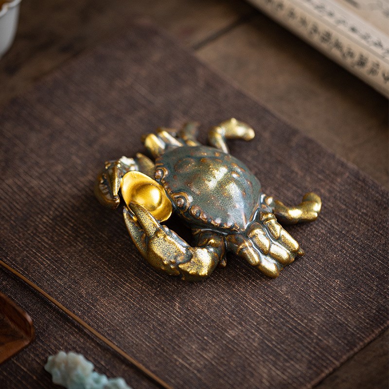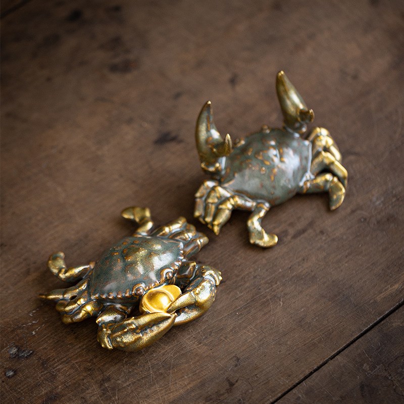 陶瓷茶宠元宝招财八方来财摆件仿生大螃蟹茶玩桌面装饰笔托架茶桌
