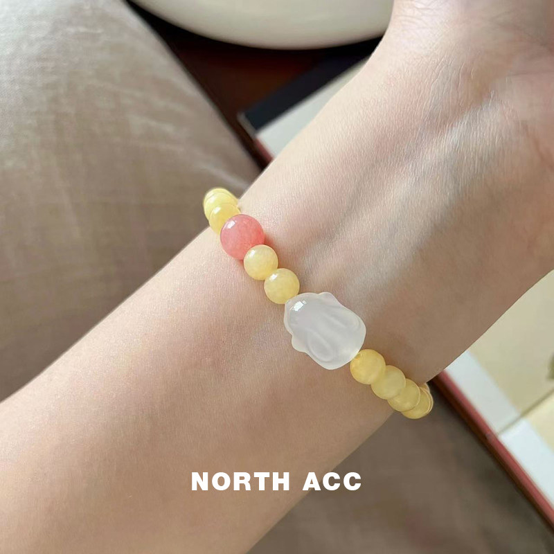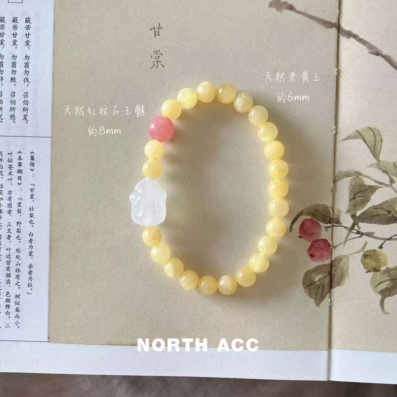 NORTHACC新中式明黄色系天然石米黄玉复古手串简约气质串珠手链