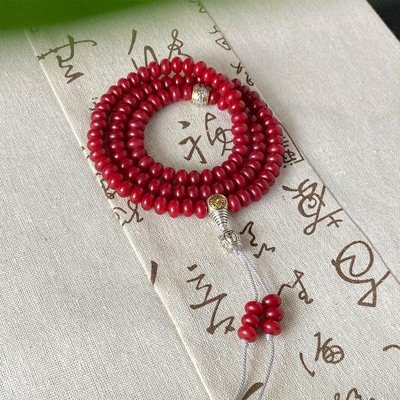 新中式石榴红菩提根长串项链复古算盘珠本命年新年红绕指柔手串