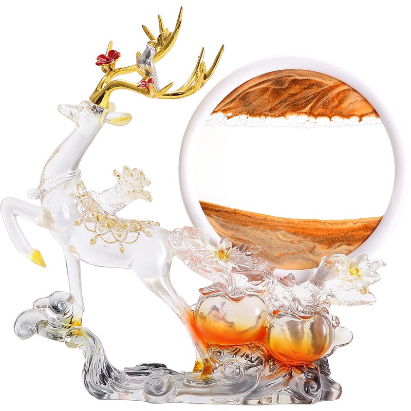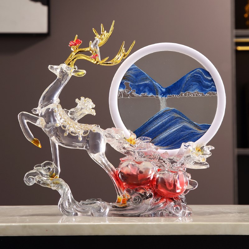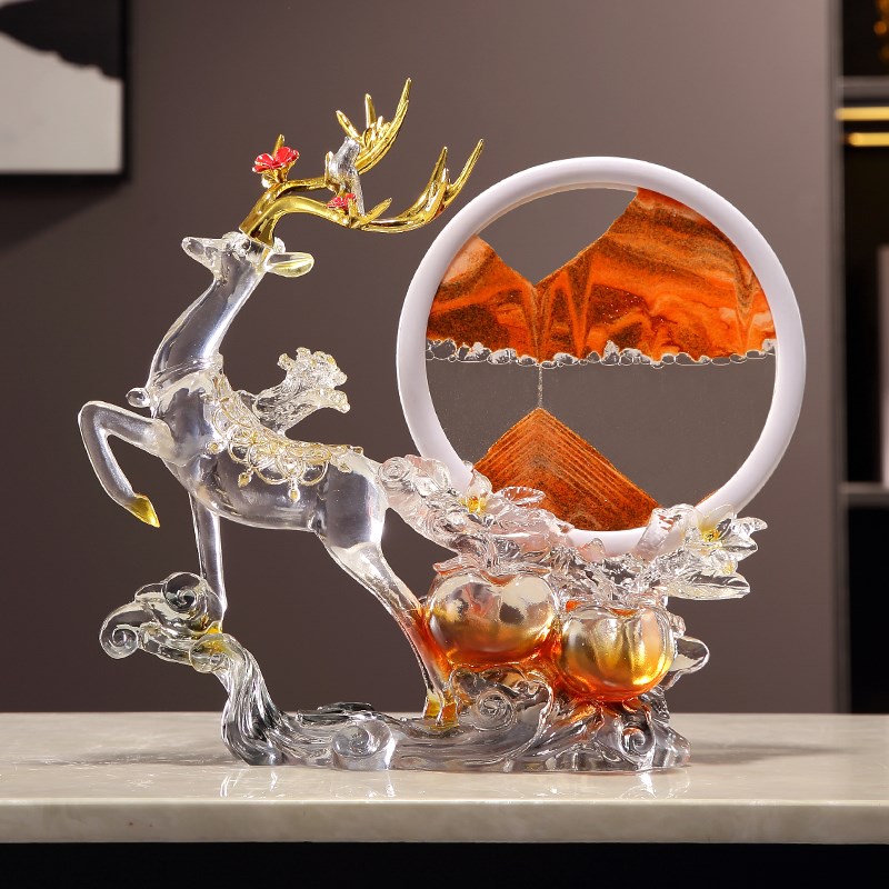简约现代流沙画轻奢高档透明招财鹿摆件客厅玄关酒柜电视柜装饰品
