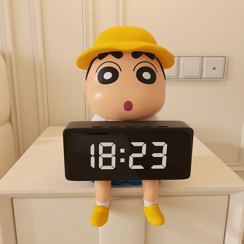 蜡笔小新客厅桌面玄关卧室电子时钟闹钟摆台式装饰品搬家礼物摆件