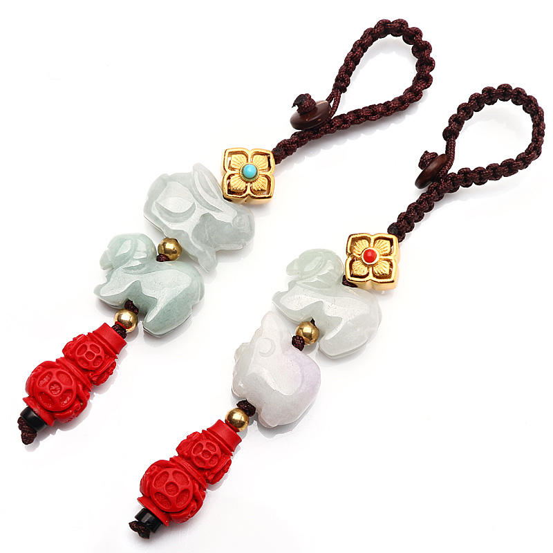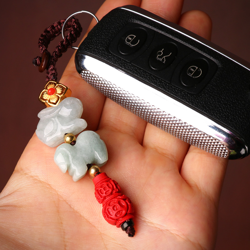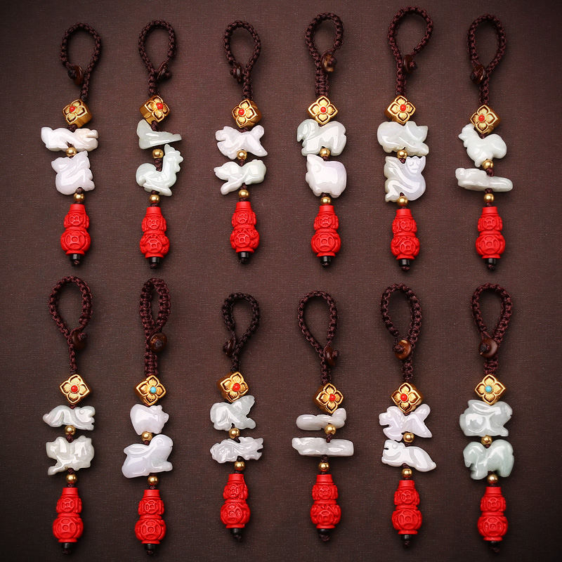 本命龙年生肖属鼠牛虎兔蛇马羊猴鸡狗猪吉祥物翡翠三合钥匙扣挂件
