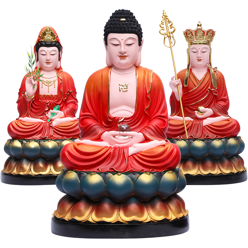 供奉树脂佛像娑婆三圣 释迦牟尼佛 观世音菩萨地藏王西方三圣
