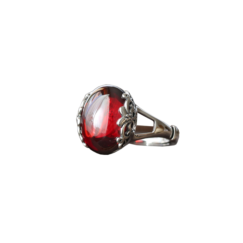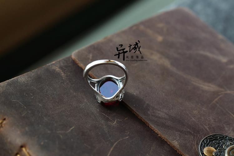 【情愫】泰银S925纯银饰品手工镶嵌红石榴锆石复古风女款戒指指环