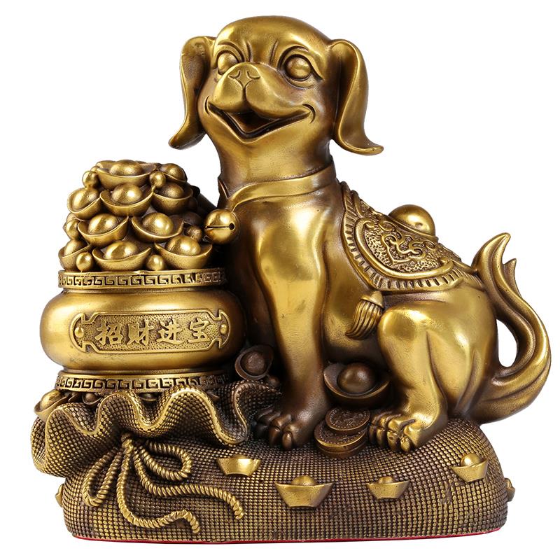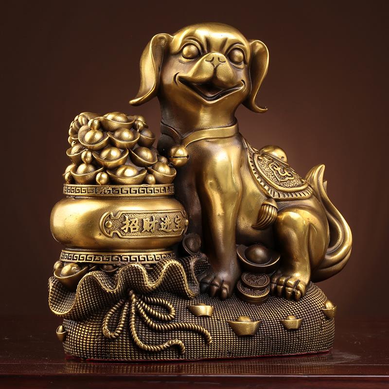 铜狗摆件纯黄铜大号家居摆设客厅玄关招财坐地生财狗装饰工艺品