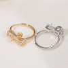 s925纯银戒指托配件diy手工制作珍珠饰品双珠蝴蝶结开口指环空托