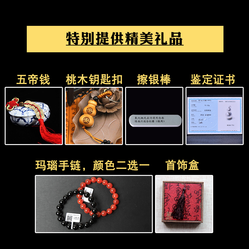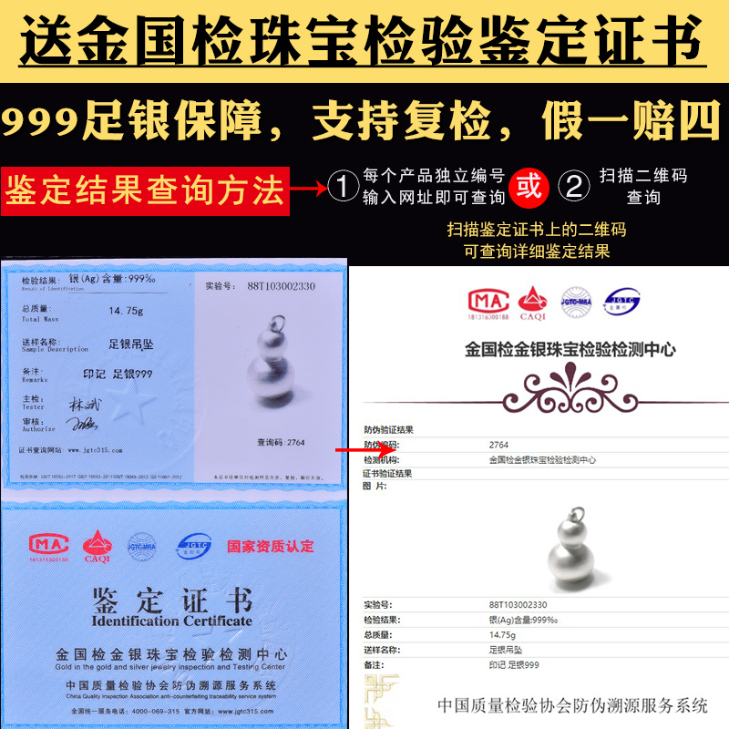 红绡(饰品)S999纯银葫芦空心挂件招财进宝葫芦吊坠平安项链男女