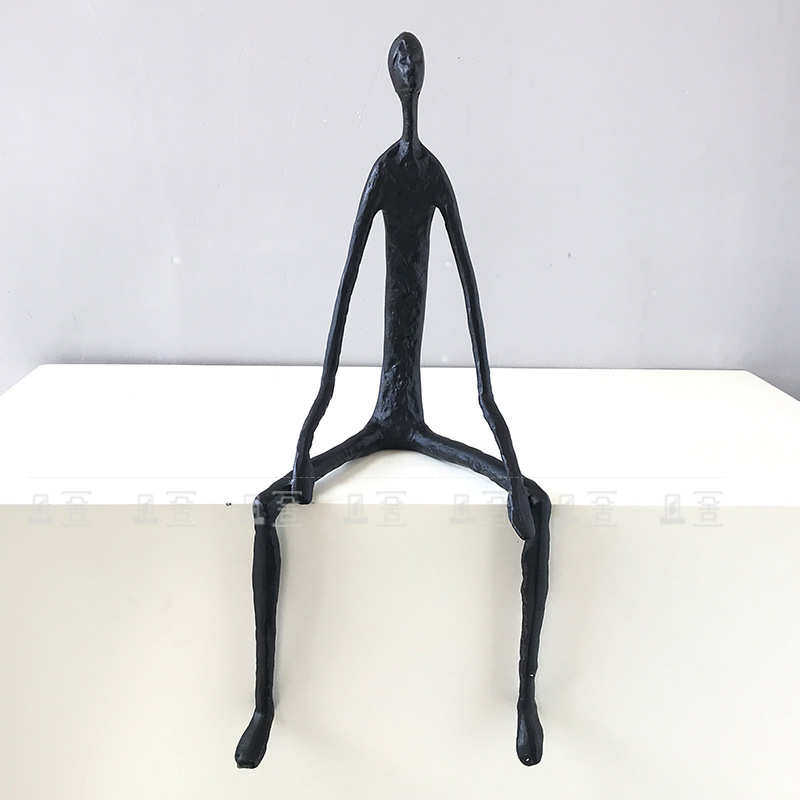 现代简约铸铁黑色抽象翘脚坐姿人物雕塑客厅玄关电视柜书房摆件