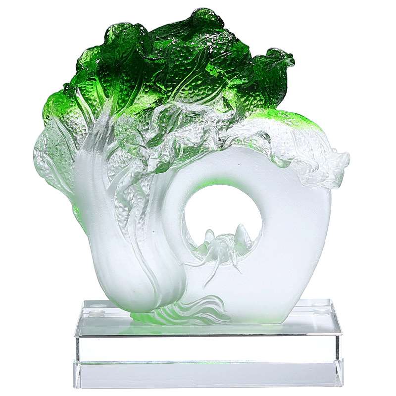 淄博琉璃翡翠玉白菜摆件招财财上生财客厅高端大气装饰玻璃工艺品