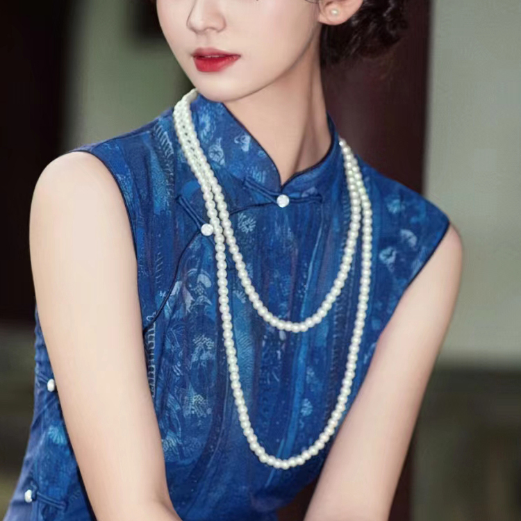 搭配旗袍珍珠项链妈妈女士中长款毛衣链双层叠戴拍照写真饰品409
