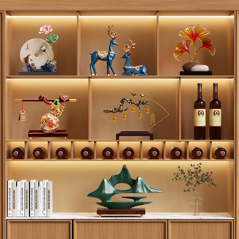 当前位置:首页>商品详情>新中式软装高级感摆件红酒架中古风乔迁新居客厅书房展示柜装饰品