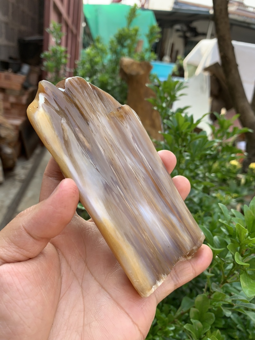 缅甸树化玉手把件高12/宽7.5/厚2厘米