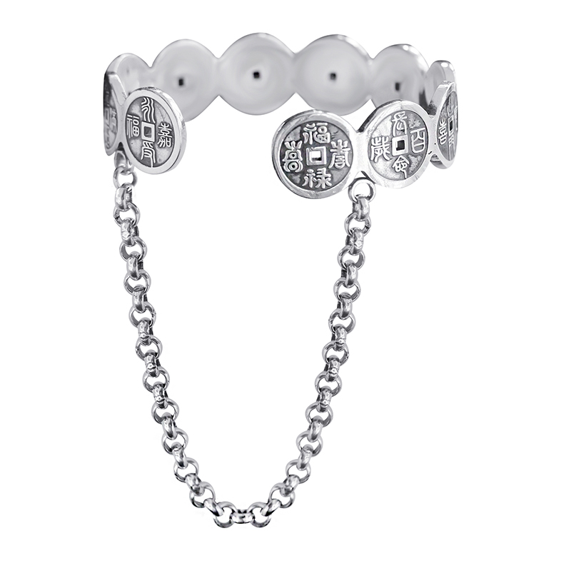 喜竹原创《古吉语花钱》99纯银个性帅气手镯中式小众设计生日礼物