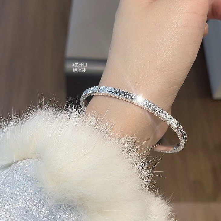 XBK碎冰冰高级感女友手环款纯银清冷手镯实心年轻足银镯子999送礼