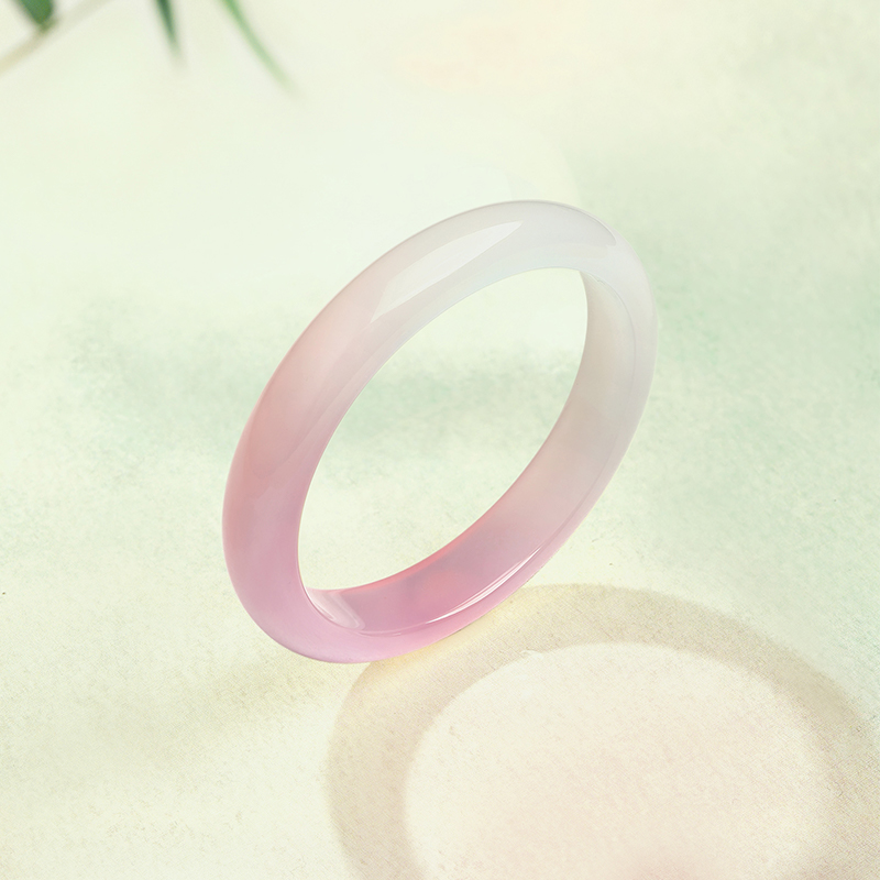 周六福粉白玉髓手镯宽条新中式高贵国风送妈妈送女友节日礼物