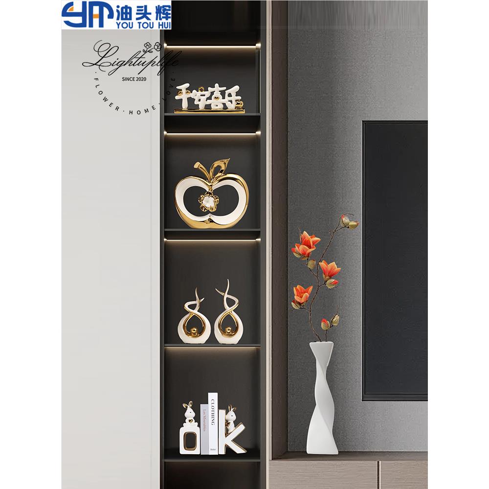 玄关柜入户正对门摆件高级感入户玄关装饰摆件电视柜壁龛高细长花