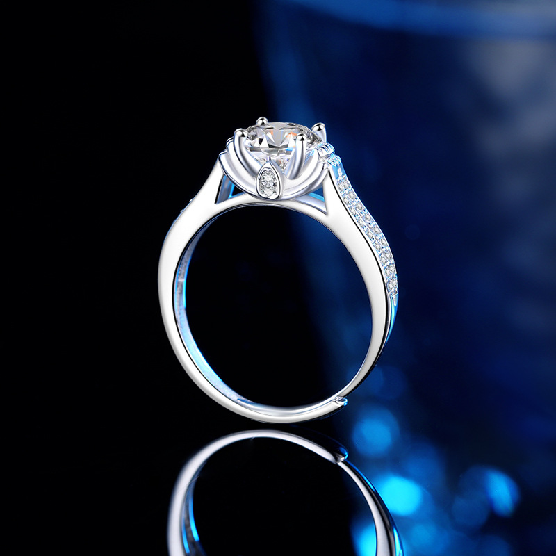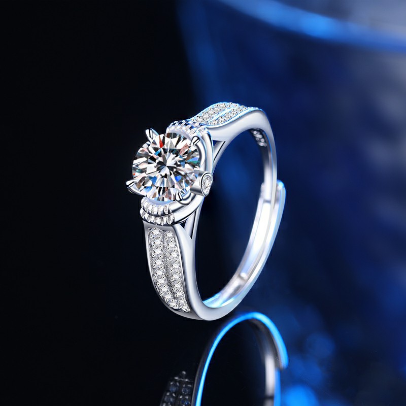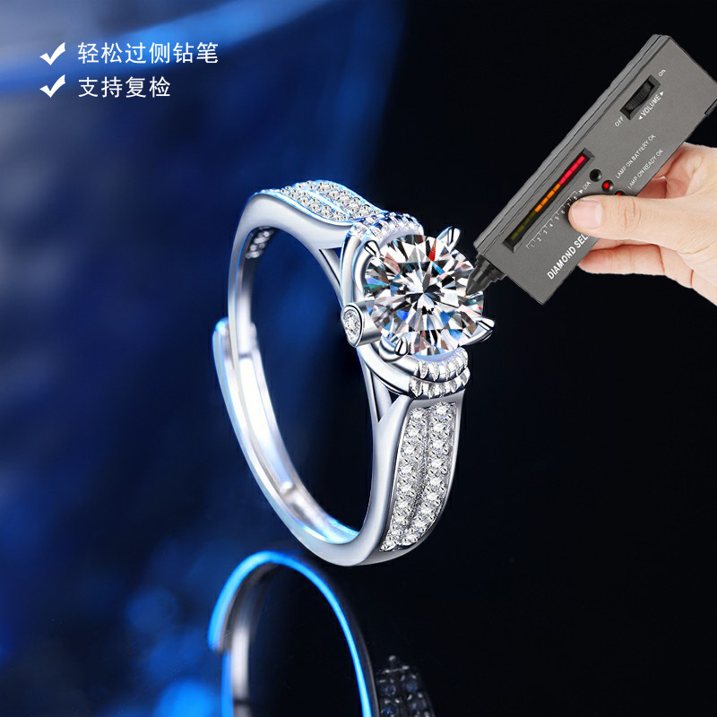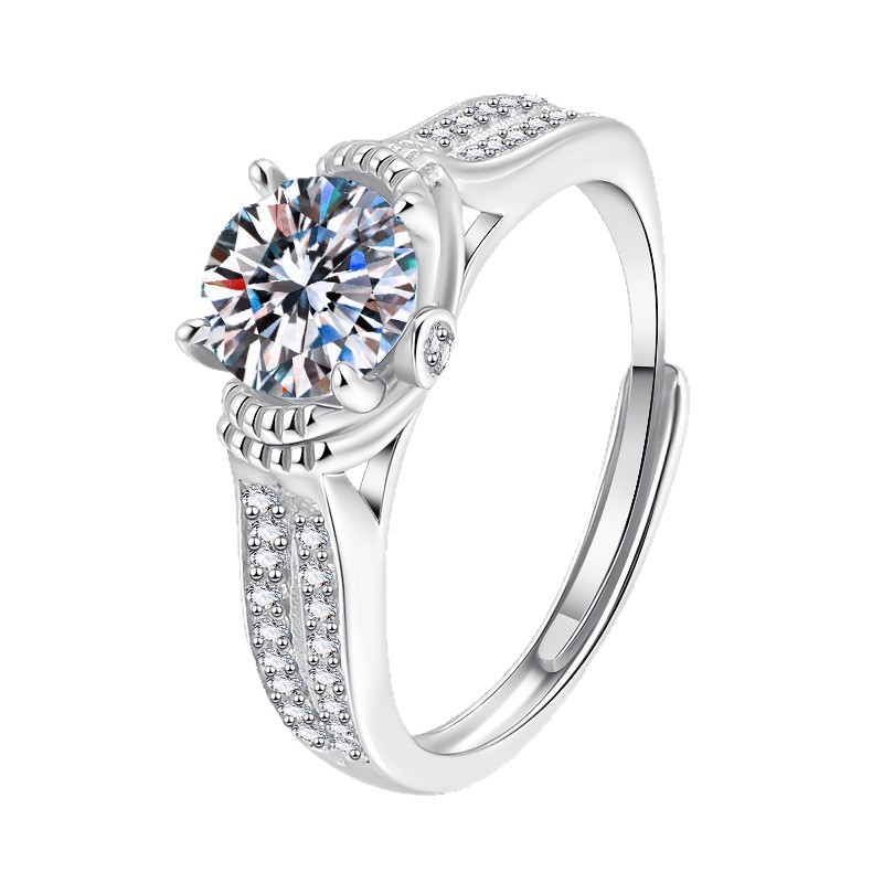 热卖s925纯银正品莫桑石星光皇后镶排钻开口指环甜美食指戒女