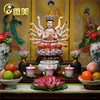微美陶瓷18寸准提佛母坐像精工彩绘千手千眼观音家用供奉佛像摆件