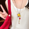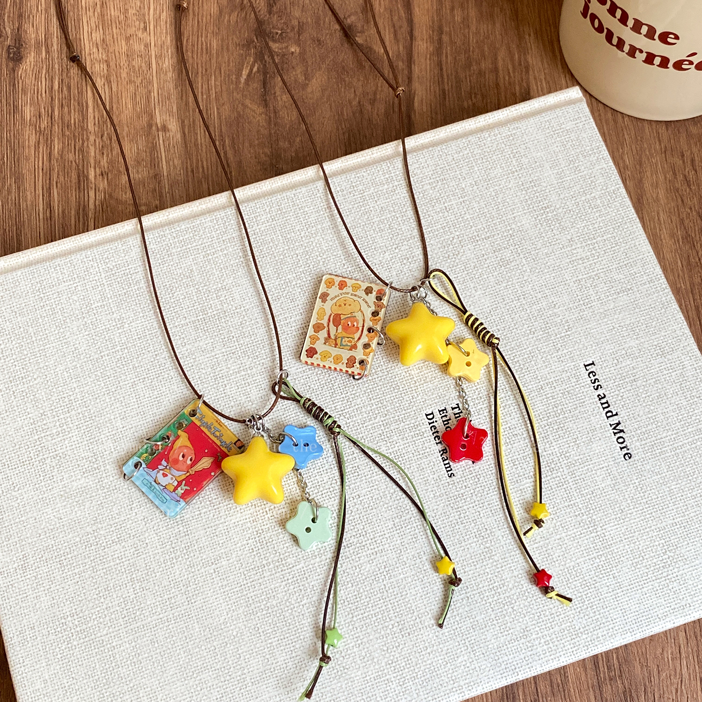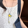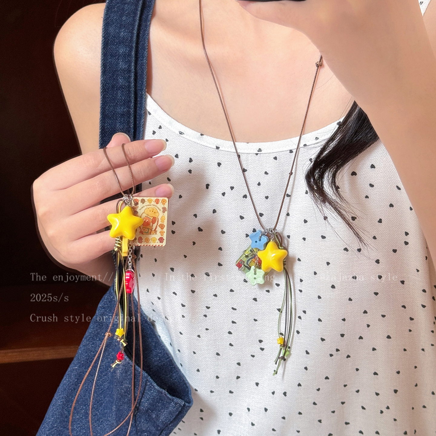 童趣星星编织长款项链女款多巴胺黄色吊坠可爱穿搭毛衣链装饰配饰