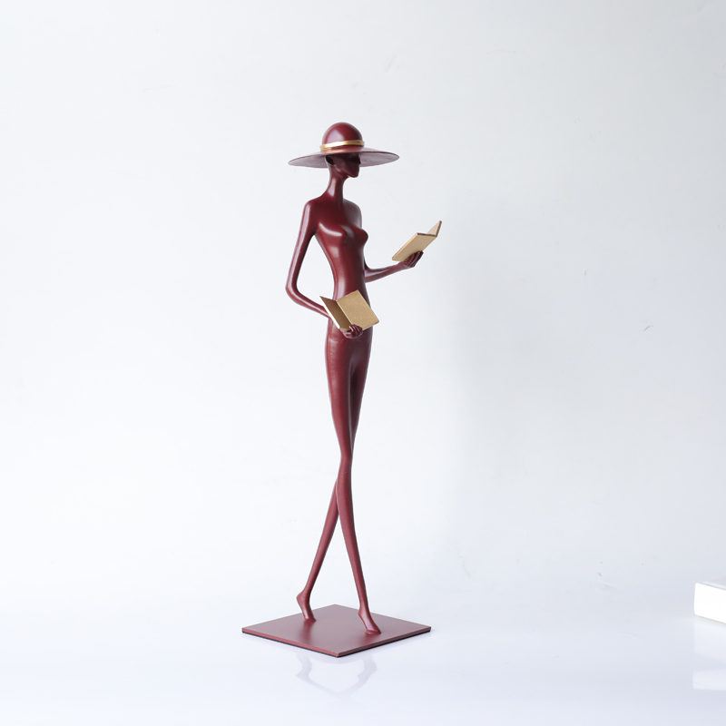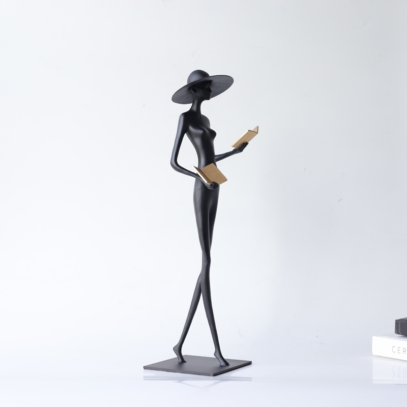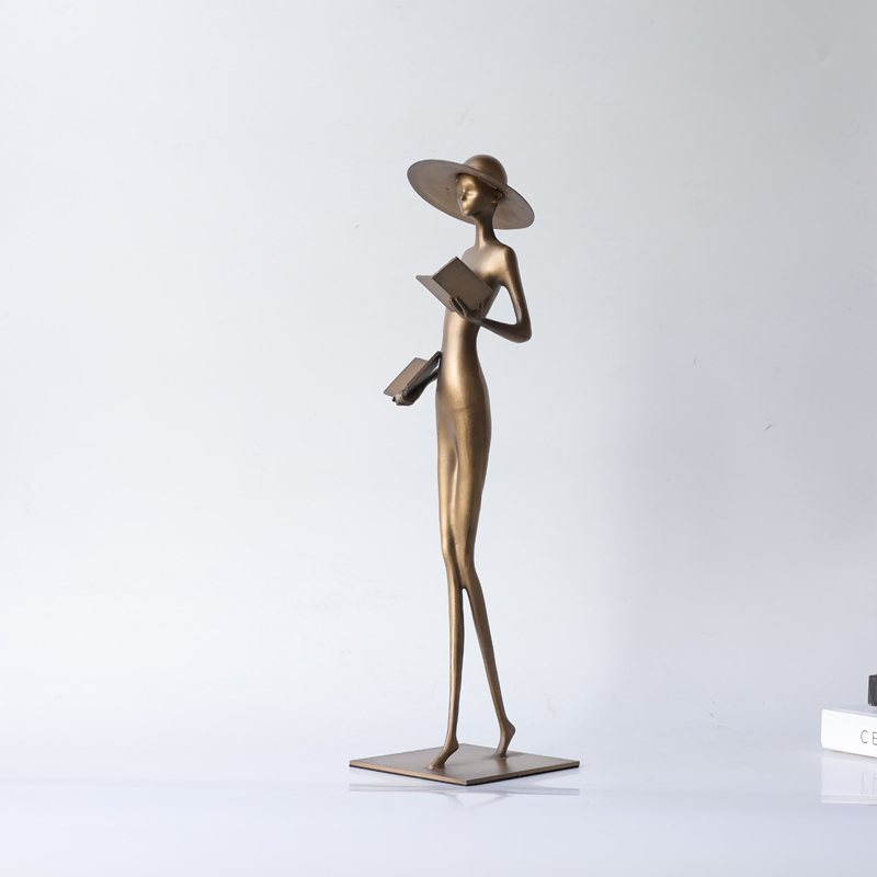 轻奢玄关看书女孩艺术人物摆件客厅壁龛沙发旁小众高级感细长装饰