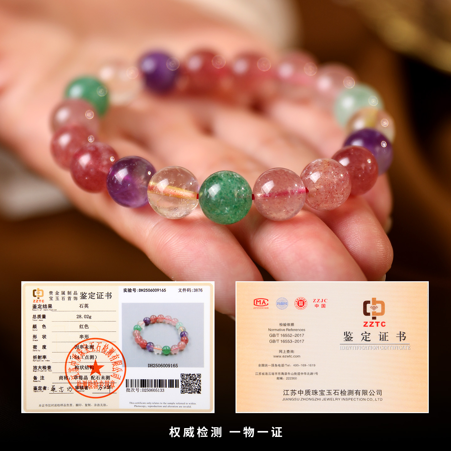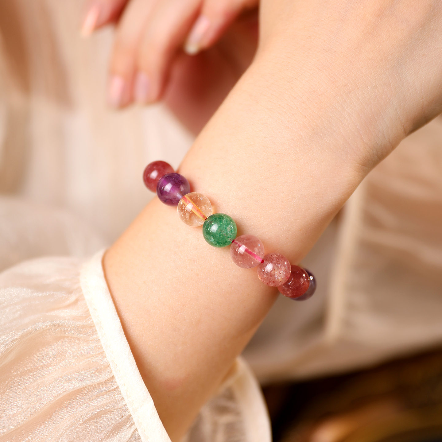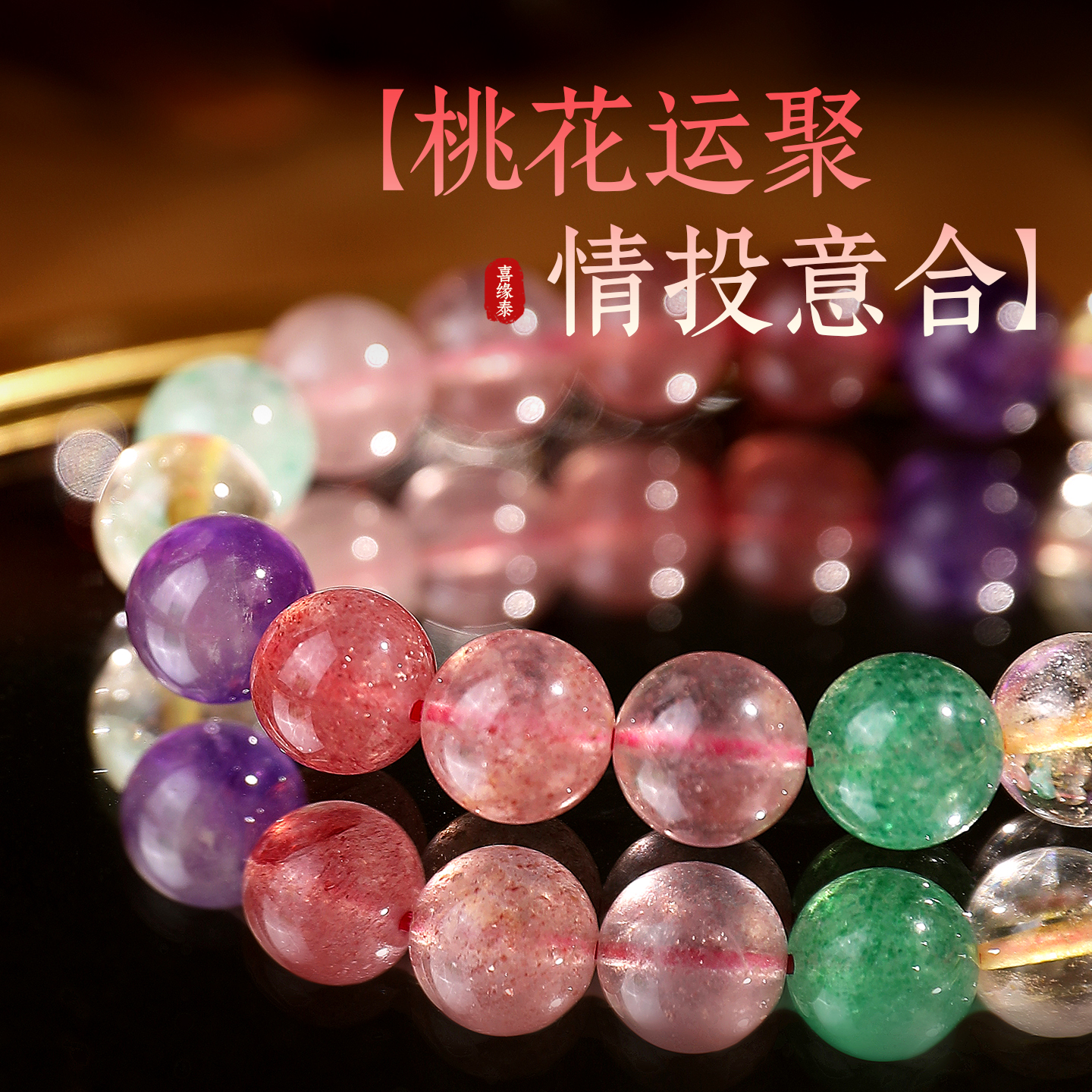 天然多宝草莓晶手链紫水晶白水晶草莓晶绿色草莓晶单圈男女款