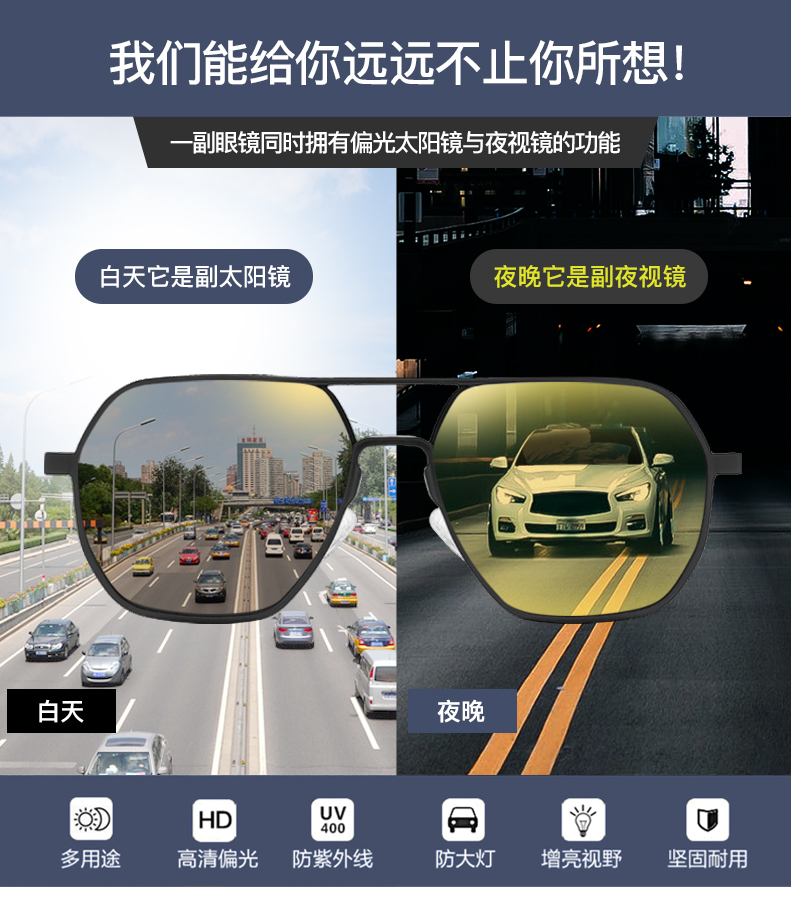 多功能近视夜视镜开车驾驶专用变色墨镜定制散光度数偏光太阳镜男
