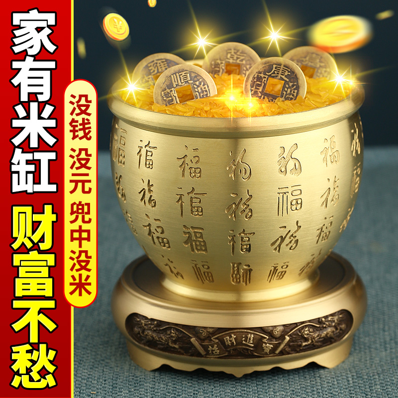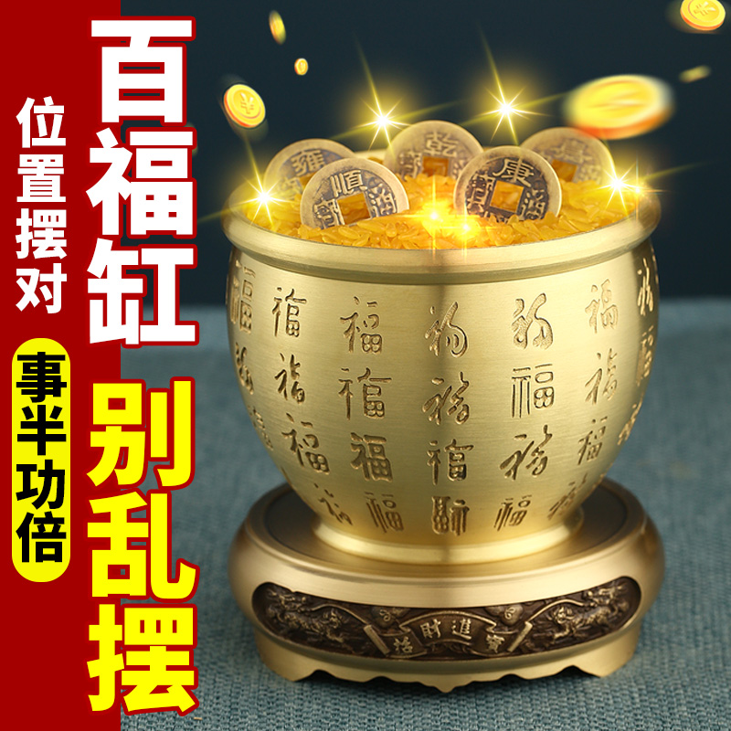 纯黄铜米缸冰箱上的百福缸聚宝盆摆件聚财招财进宝客厅铜制大号