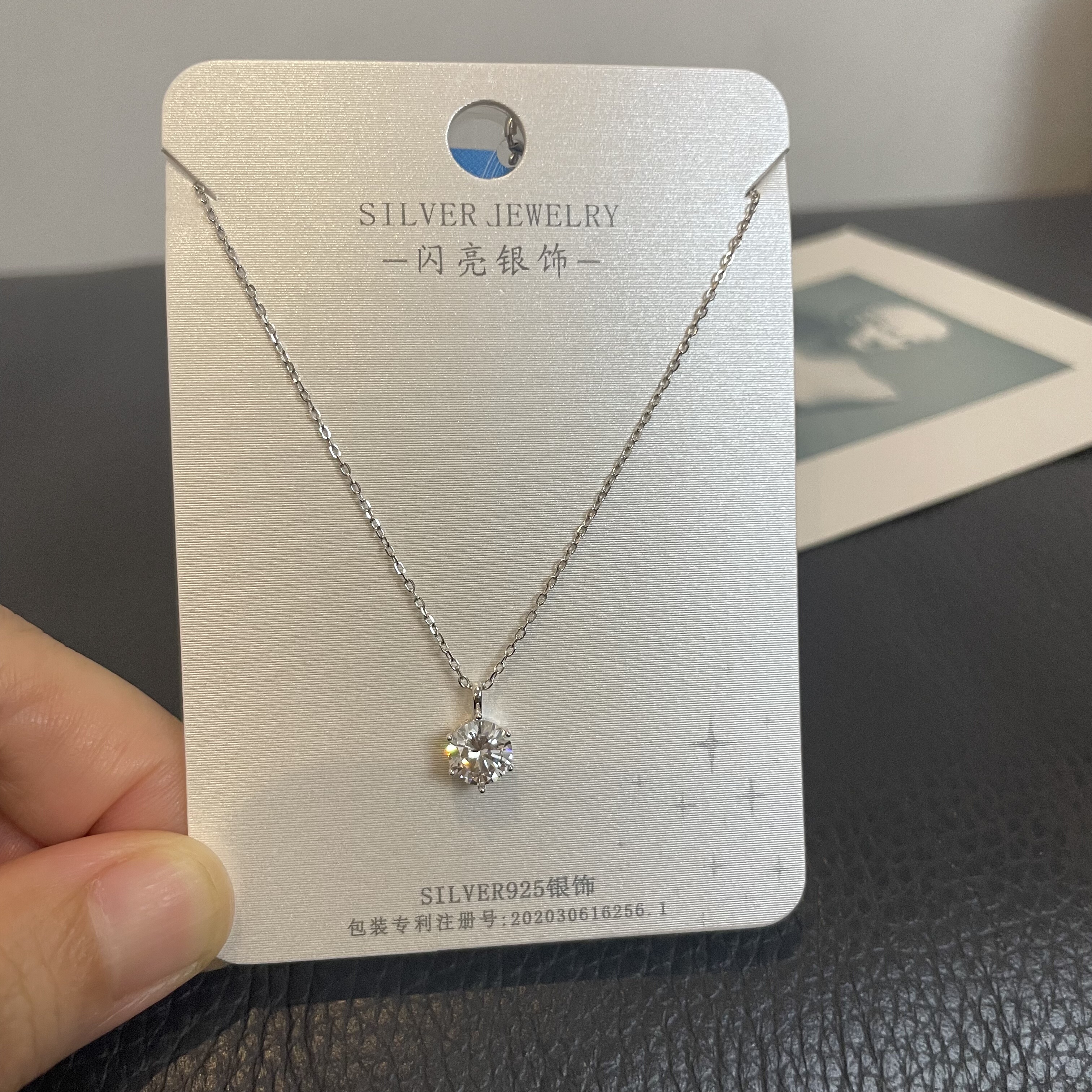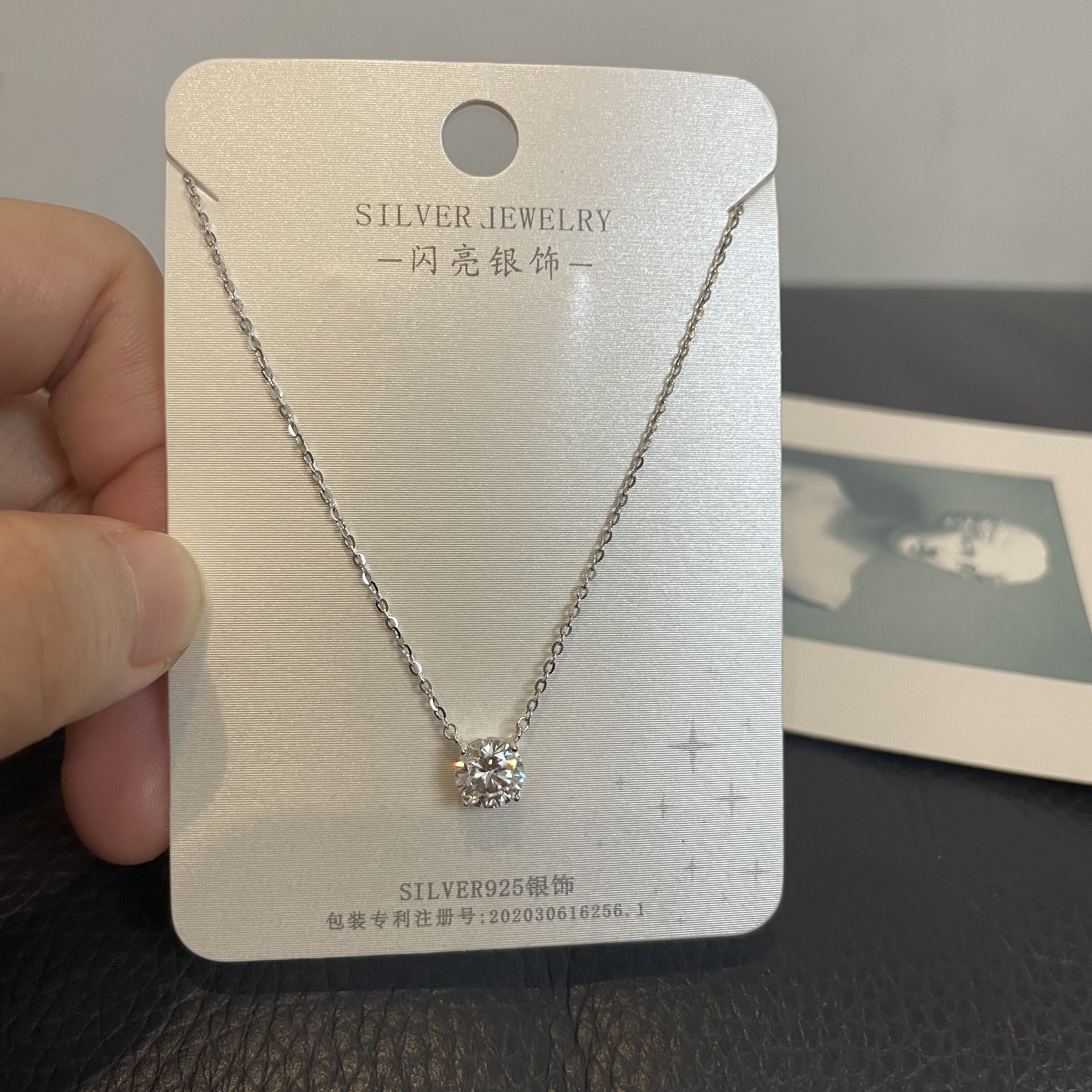 S925纯银超闪!锆石钻Bling~精致小巧四爪钻项链女锁骨链礼物