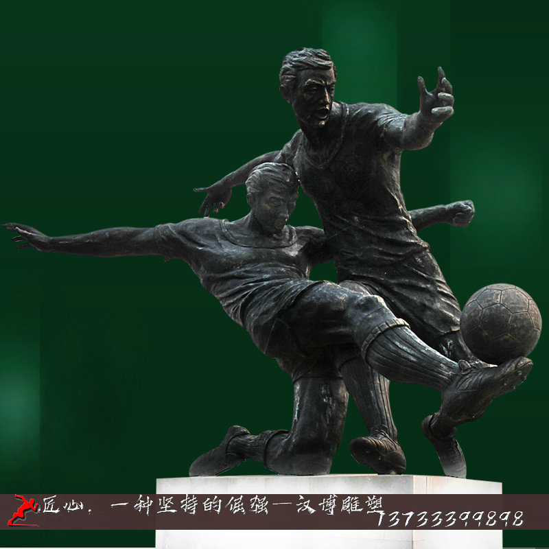 定制户外广场景观雕塑校园运动人物雕像玻璃钢仿铜踢足球铜雕定制